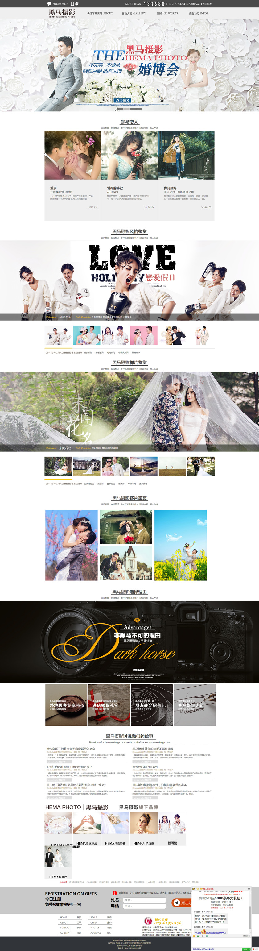 Project Description 黑马摄影,把每一对新人幸福梦想当成毕生的追求和责任,带着一对对新人的支持和厚爱,不断创新摄影风格,完善服务理念。无论从服务,作品,体验,我们虽然不能说100%没有缺陷,但我们有100%追求完美的心 Official website address 黔江http://www.hemaphoto.cn I want to share